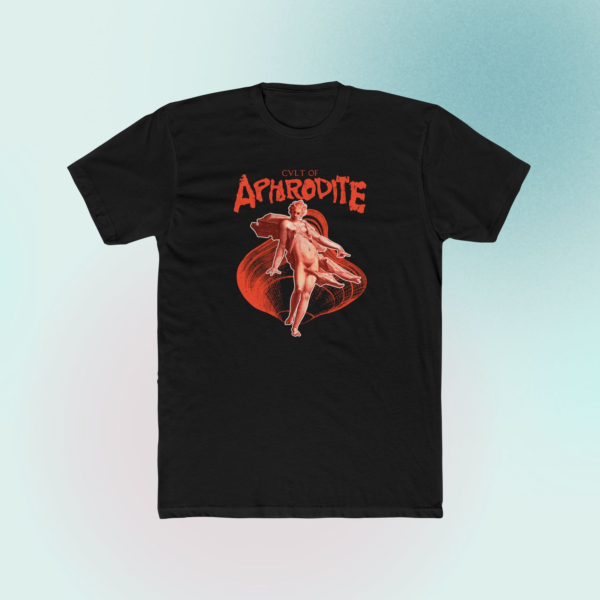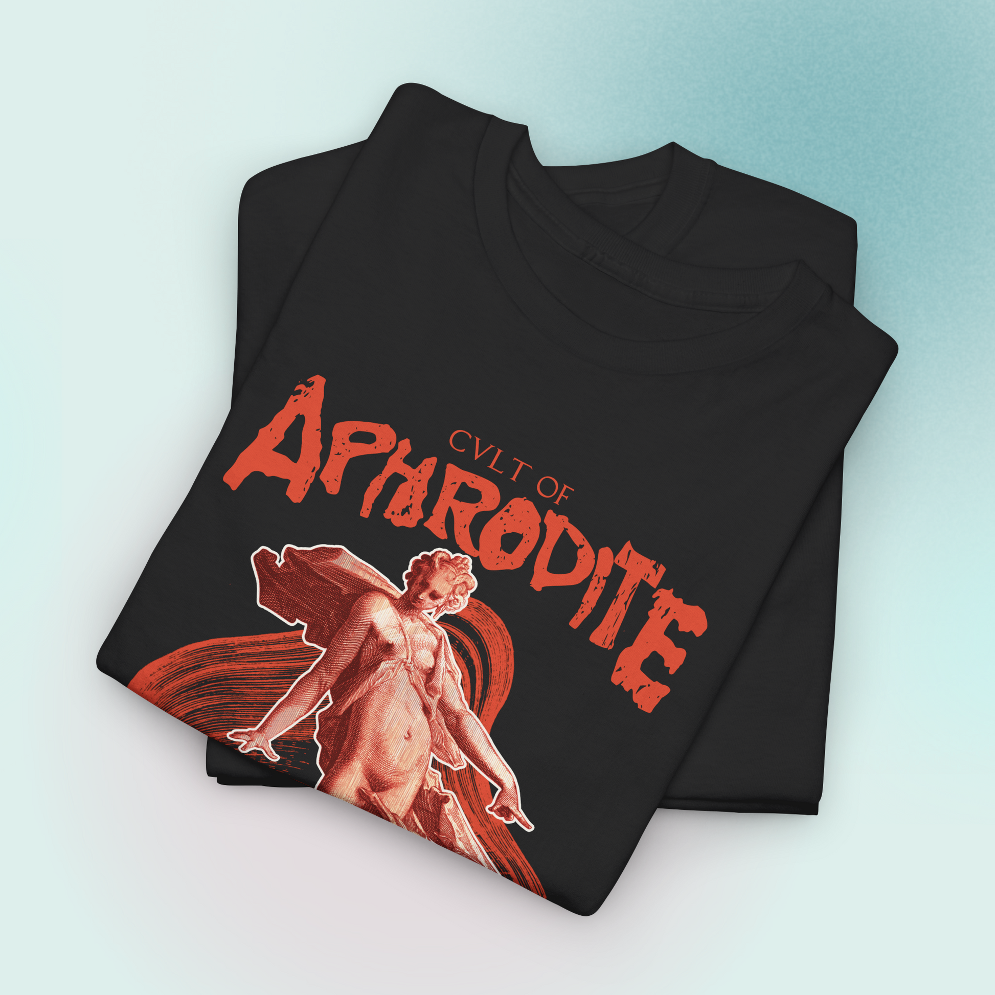 Embrace the mayhem and walk on the dark side of love with this rock and metal inspired Cult of Aphrodite t-shirt! This design is for all the goth girlies who want to rep Aphrodite but don't really vibe with the light and airy aesthetic.
